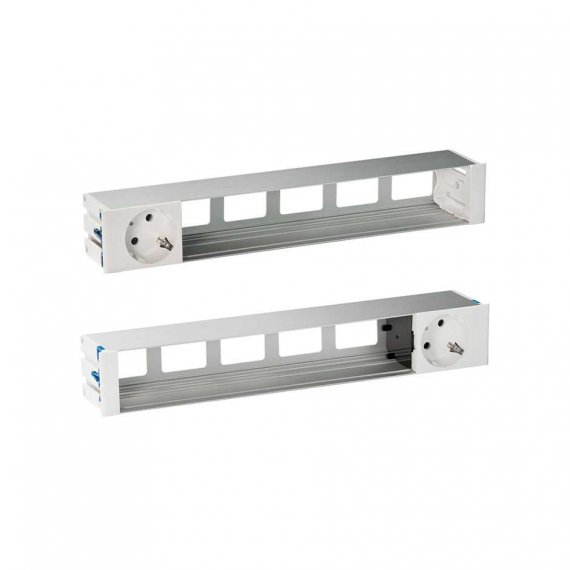 Двусторонний врезной x12 розеточный блок, щетка, 2x2P+E, 10 пустых модулей, алюминий, S400