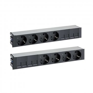 Двусторонний врезной x12 розеточный блок, щетка, 8x2P+E, 8xRJ45, черный, S400