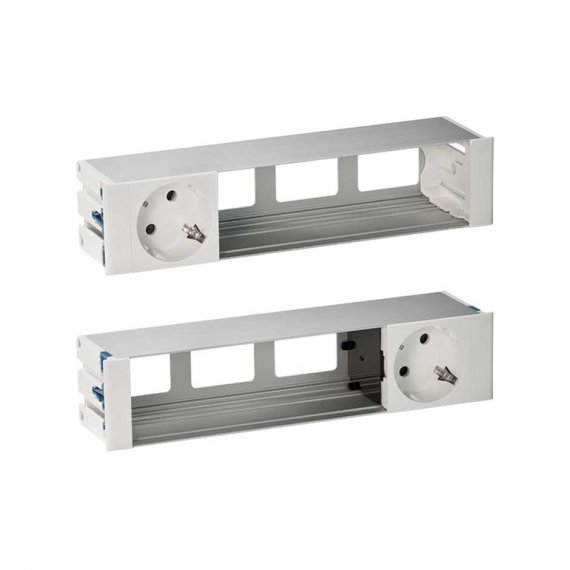 Двусторонний врезной x8 розеточный блок, планка, 2x2P+E, 6 пустых модулей, алюминий, S400
