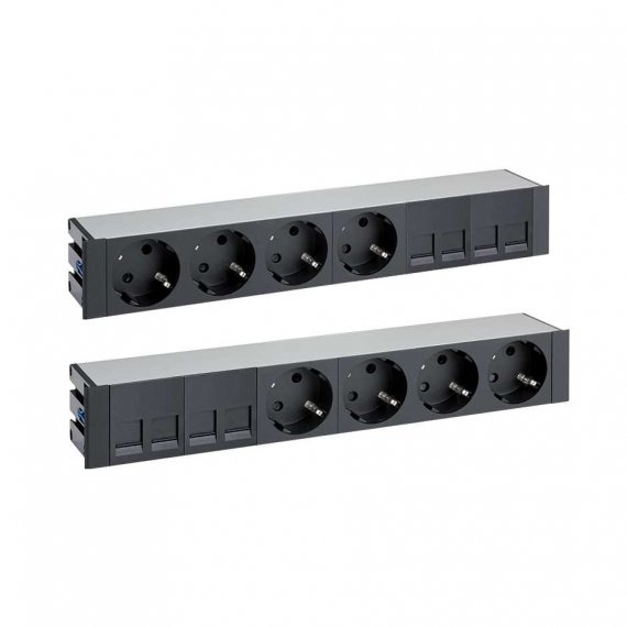 Двусторонний врезной x12 розеточный блок, планка, 8x2P+E, 8xRJ45, черный, S400