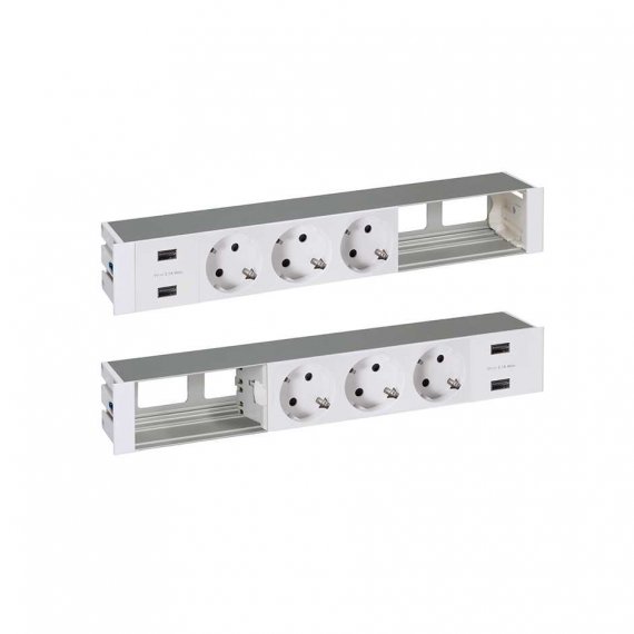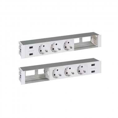 Двусторонний врезной x12 розеточный блок, планка, 6x2P+E, 2xUSB A+A з/у, 4 пустых модуля, белый, S400