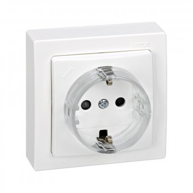Simon 73041-60 Накладка со шторками для розетки с заземлением 2Р+Е белого цвета Simon 73 Loft