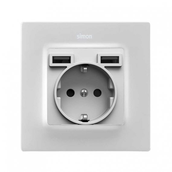 Simon 7501432-039 Розетка Schuko 2Р+Е с з/у USB A+A 10W, 16A 250В~, S75