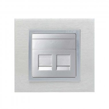 Накладка прямая со шторками и суппортом на 2 разъема RJ45, алюминий, S82