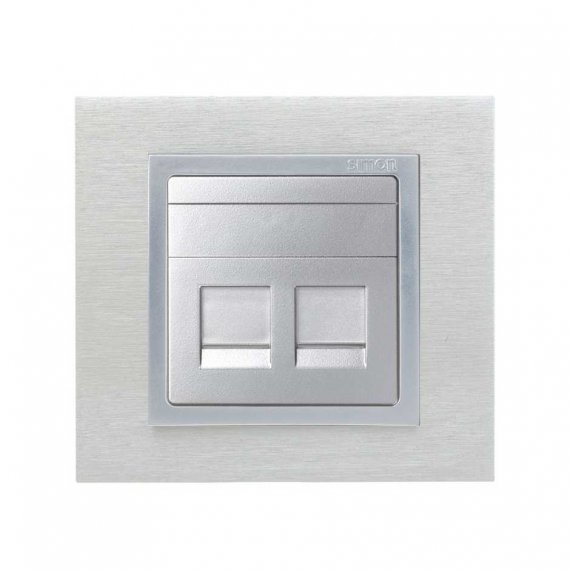 Simon 82006-33 Накладка прямая со шторками и суппортом на 2 разъема RJ45