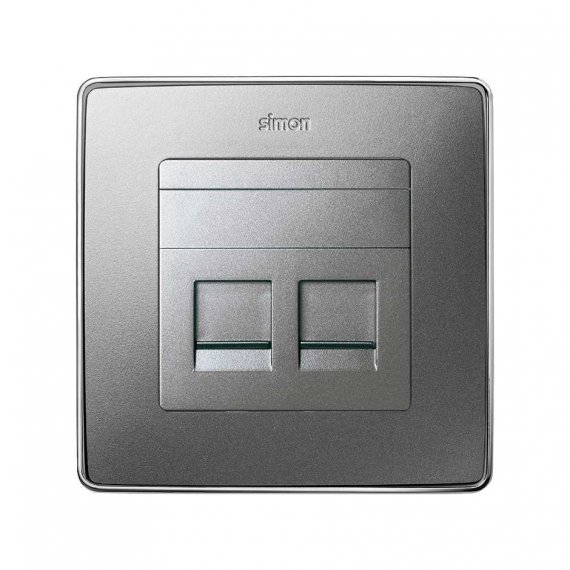 Simon 82006-93 Накладка прямая со шторками и суппортом на 2 разъема RJ45