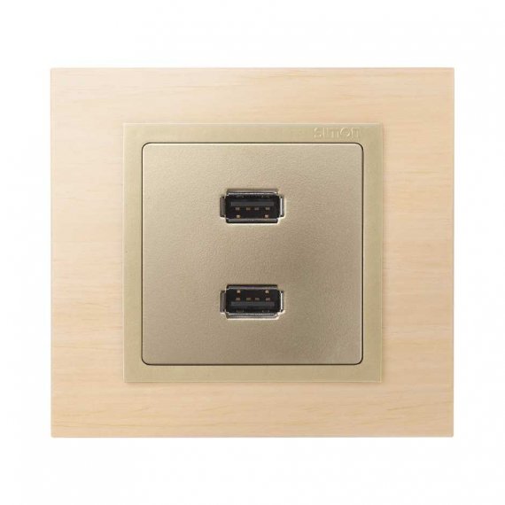 Simon 8201090-034 Накладка для розетки 2хUSB 2.0, шампань, S82