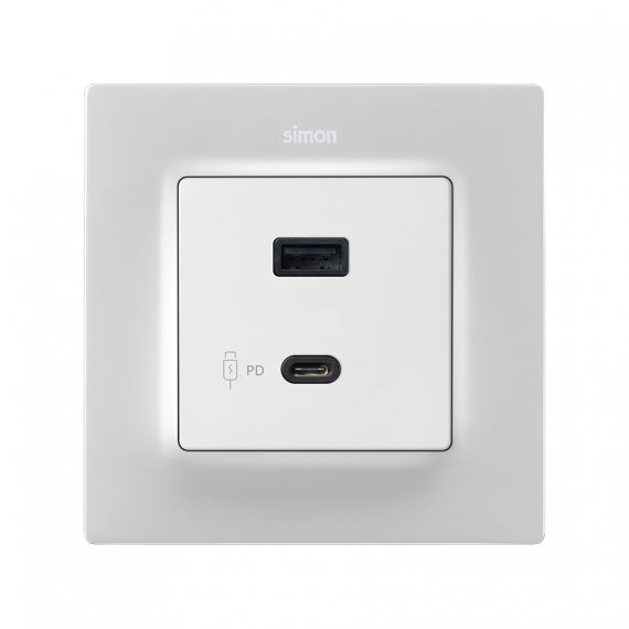 Simon 8201296-090 Накладка для заряд.устройства USB A+C, мат.белый, S82C