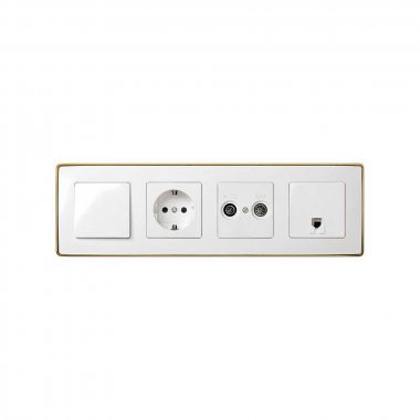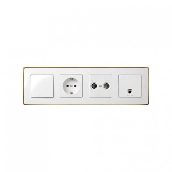 Simon 8201640-245 Рамка на 4 поста, белый/металл.золото, S82D