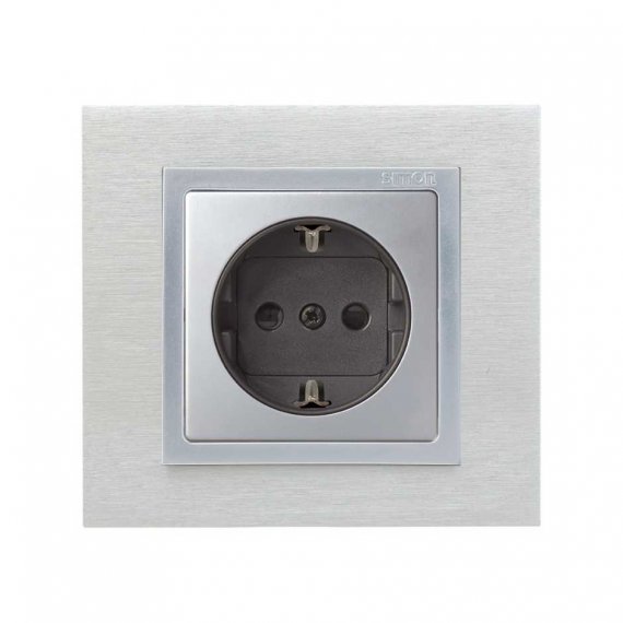 Simon 82041-33 Накладка со шторками для розетки Schuko 2Р+Е цвета алюминий/графит S82