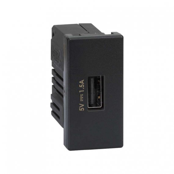 Зарядное устройство узкое USB A 7.5W, 230В~, графит, K45, Connect