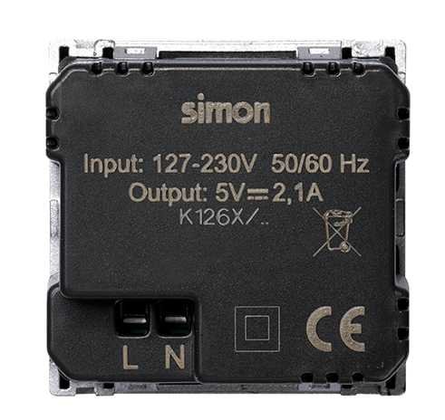 Simon K126E-8 Зарядное устройство USB A+A 10W, 230В