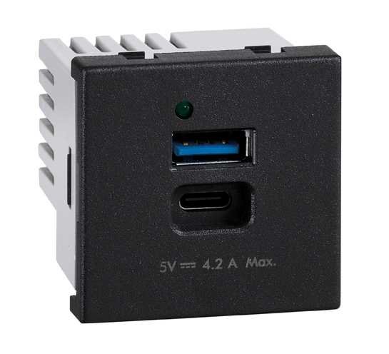 Зарядное устройство USB A+C 21W, 230В~, графит, K45, Connect