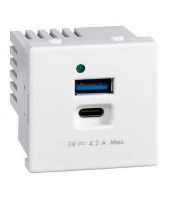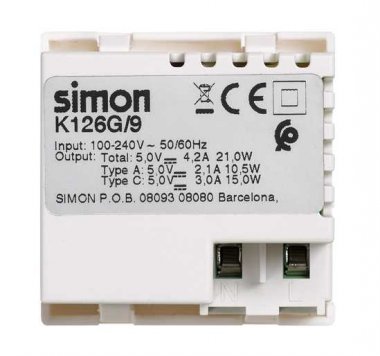 Simon K126G-9 Зарядное устройство USB A+C 21W, 230В